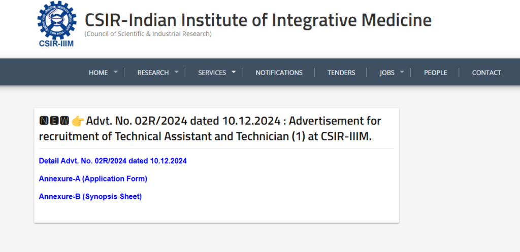 Below is a brief summary of the educational requirements, age restriction, and other information. A call for technicians and technical assistants has been issued by the Indian Institute of Integrative Medicine, Jammu (CSIR) (1). The official notification contains all of the recruitment’s information. Candidates who meet the requirements can download the official notification, which is provided below.
